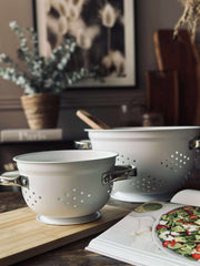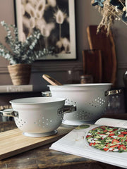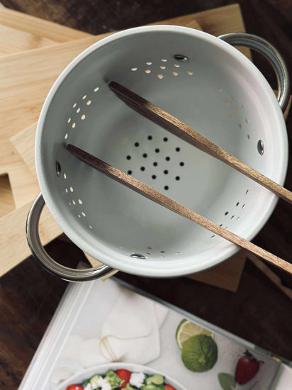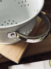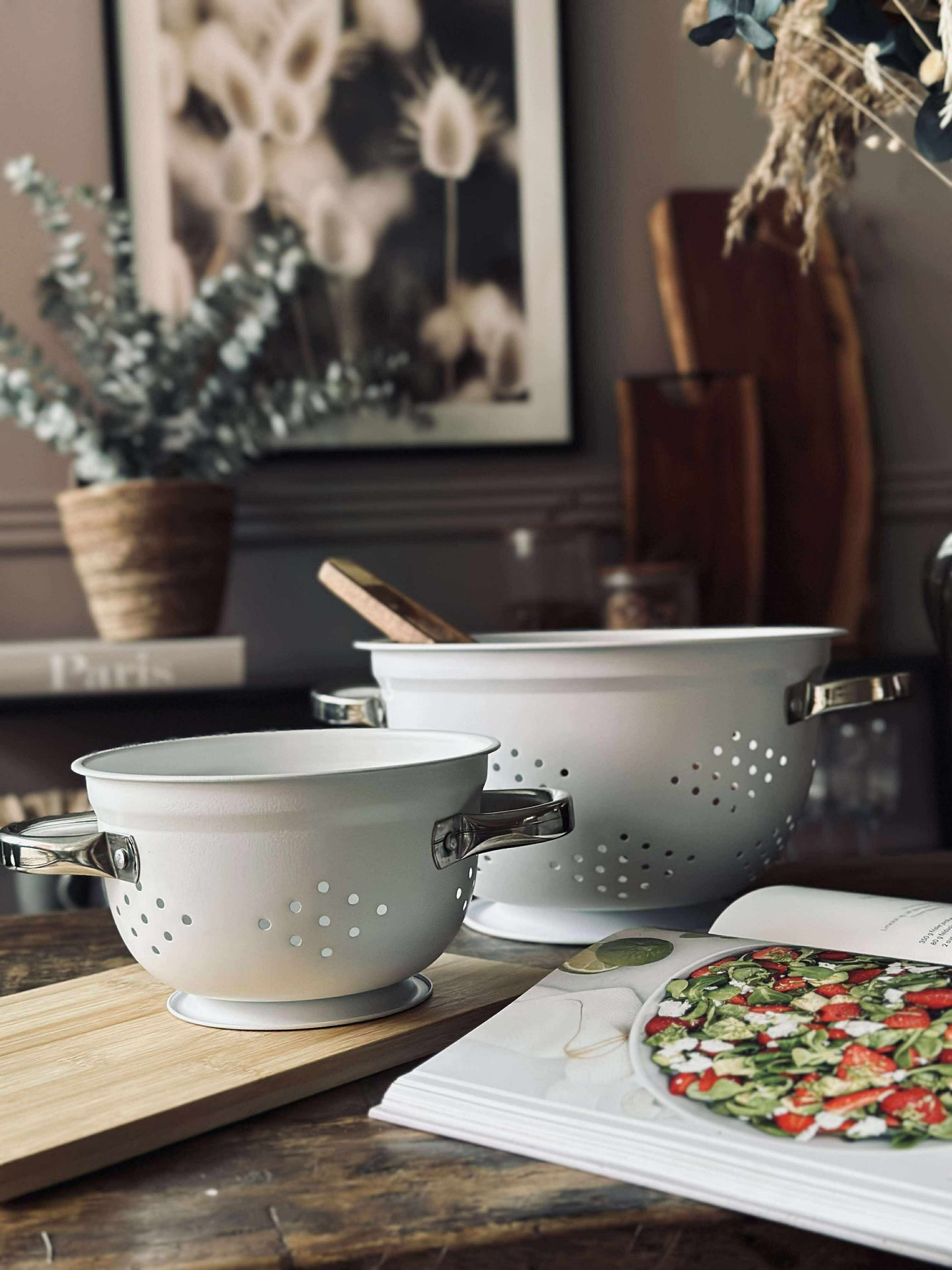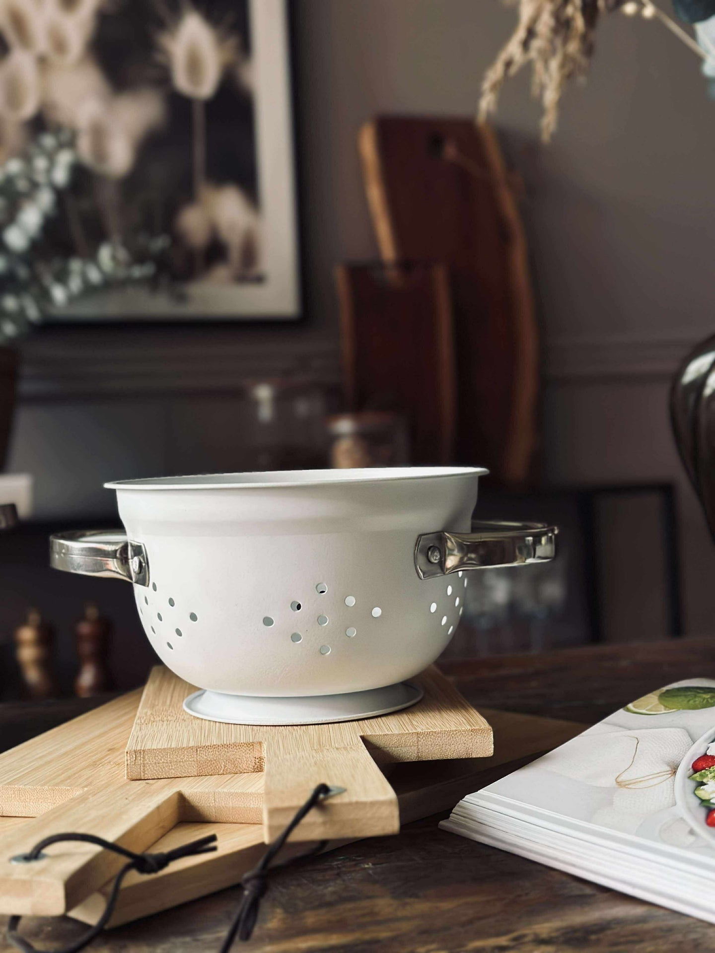 Durkslaget, tillverkat av vitt stål, erbjuder en hållbar och robust lösning för daglig användning i köket. Det vita stålets motståndskraft mot rost och fläckar säkerställer att durkslaget behåller sitt utseende trots frekvent användning. Dessutom gör materialets styrka det enkelt att hantera tunga livsmedel utan risk för deformation, vilket ger en pålitlig upplevelse vid matlagning och förberedelser.
