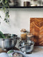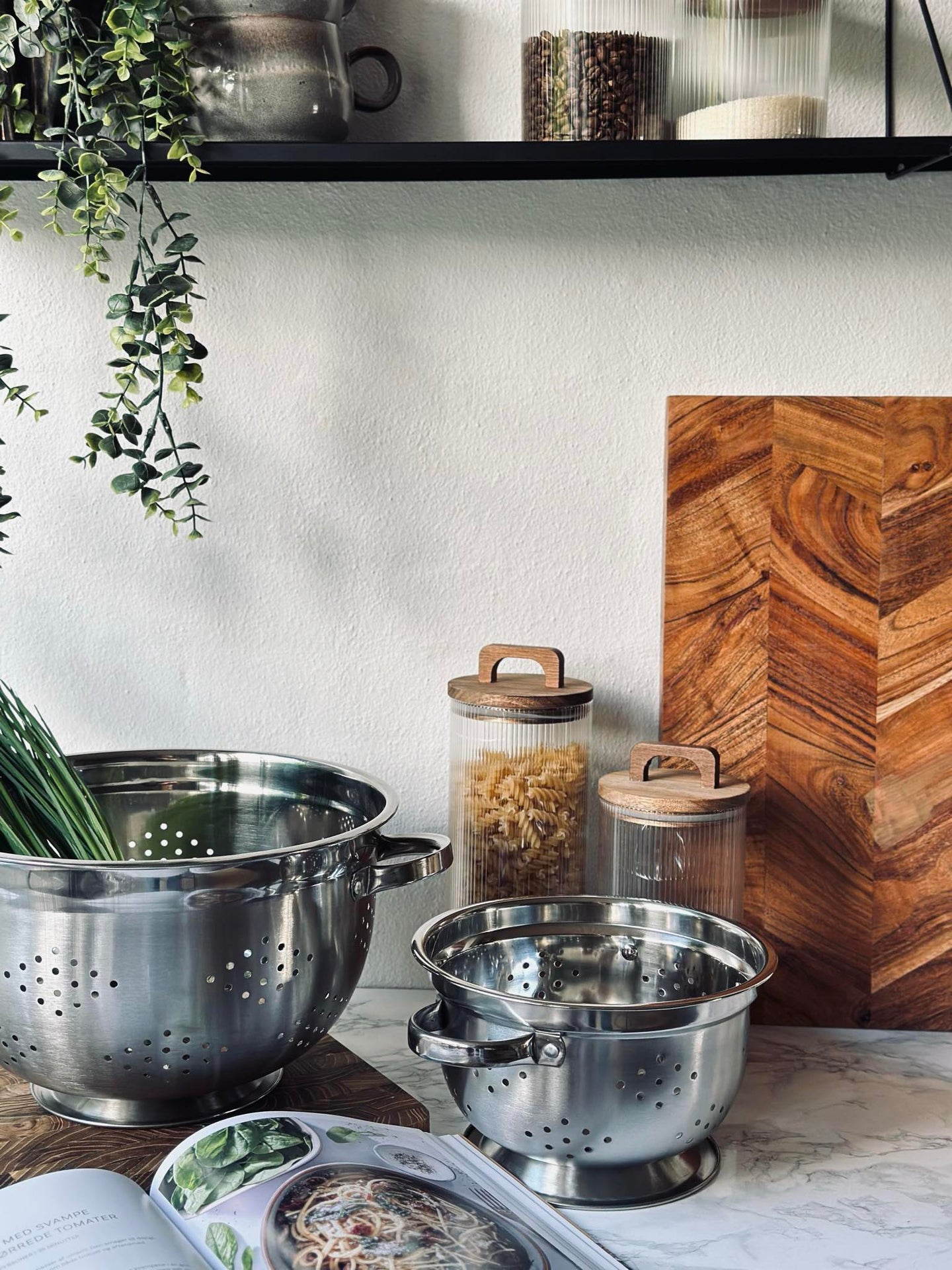 Durkslaget är tillverkat av rostfritt stål, vilket ger en långvarig hållbarhet och motståndskraft mot rost och korrosion. Materialets hygieniska egenskaper gör det enkelt att rengöra och underhålla, vilket är viktigt för daglig användning i köket. Dessutom bidrar rostfritt stål till att bevara durkslagets form och funktion över tid, vilket säkerställer att det förblir ett pålitligt verktyg vid matlagning.