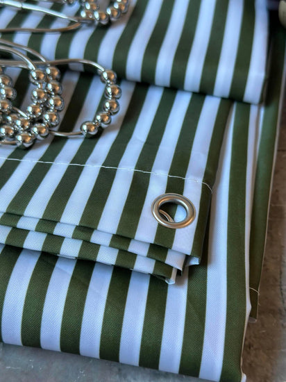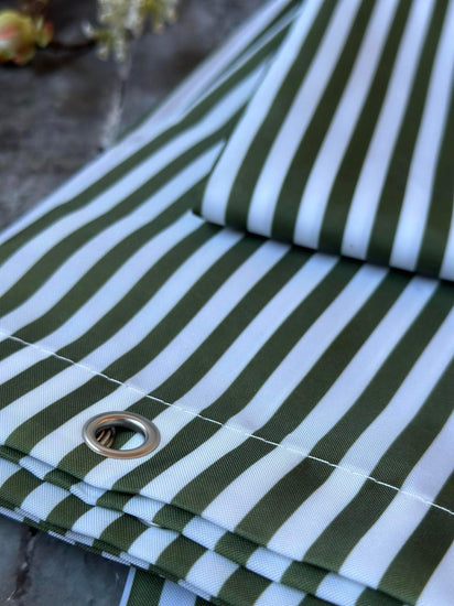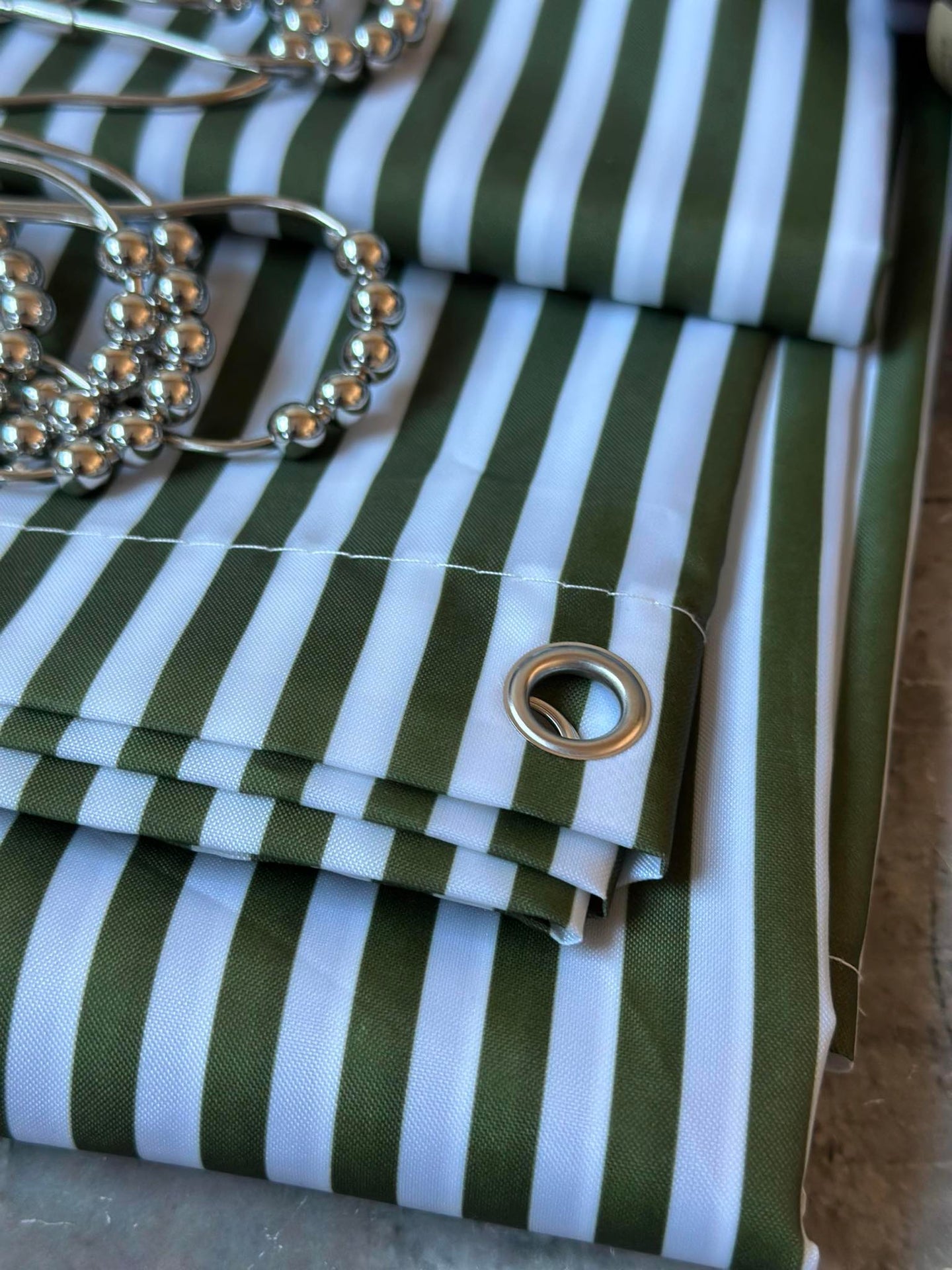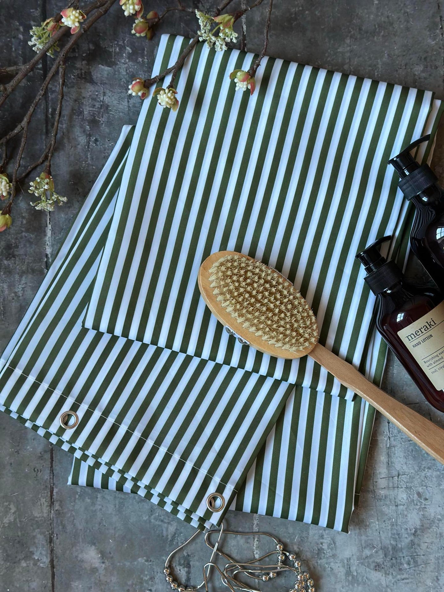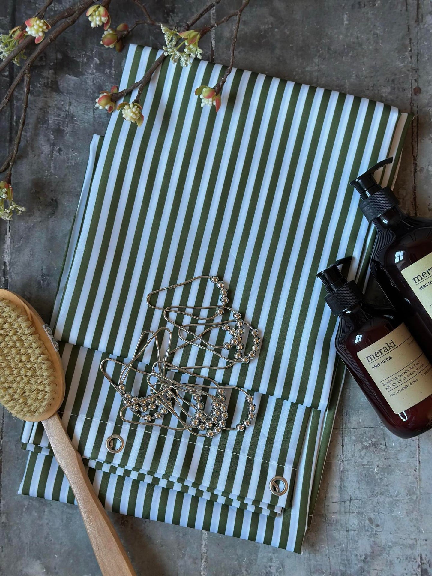 Slipp vattenstänk och oordning i ditt badrum med Duschdraperi - Grön rand. Ge ditt badrum en praktisk och stilren uppgradering idag!