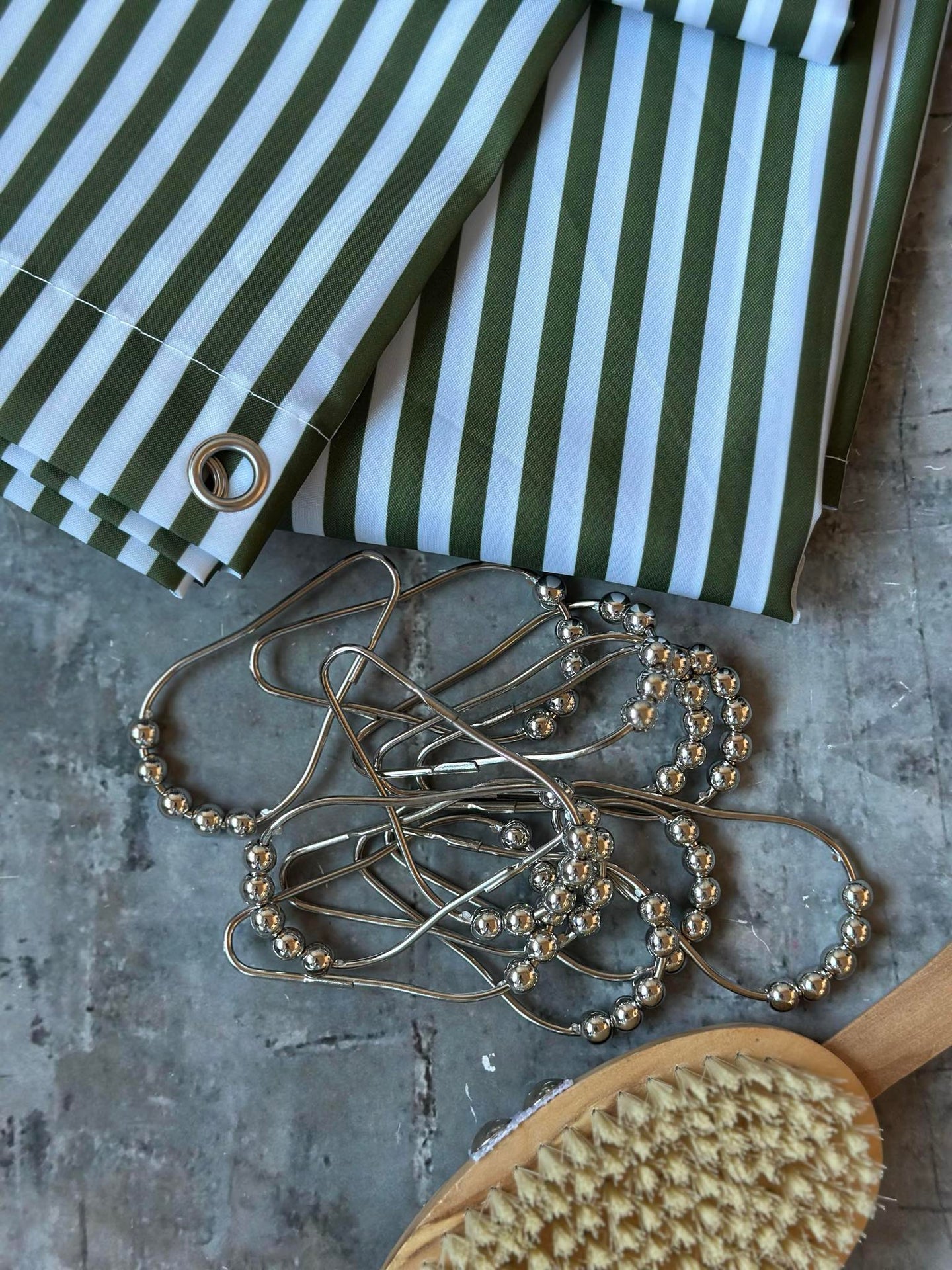 Trött på vatten som skvätter utanför duschen? Duschdraperi - Grön rand erbjuder en praktisk lösning som hjälper dig att hålla badrummet torrt och organiserat. Med enkel hantering och diskret stil är det ett pålitligt val för ditt badrum.