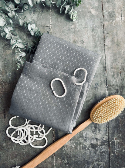 Ett duschdraperi är ett enkelt sätt att ge ditt badrum en uppfräschning. Detta duschdraperi i ljusgrå färg kommer med 12 krokar och har måtten 180 x 200 cm. Det är tillverkat av 100 % polyester, vilket gör det lätt att hålla rent och fräscht.