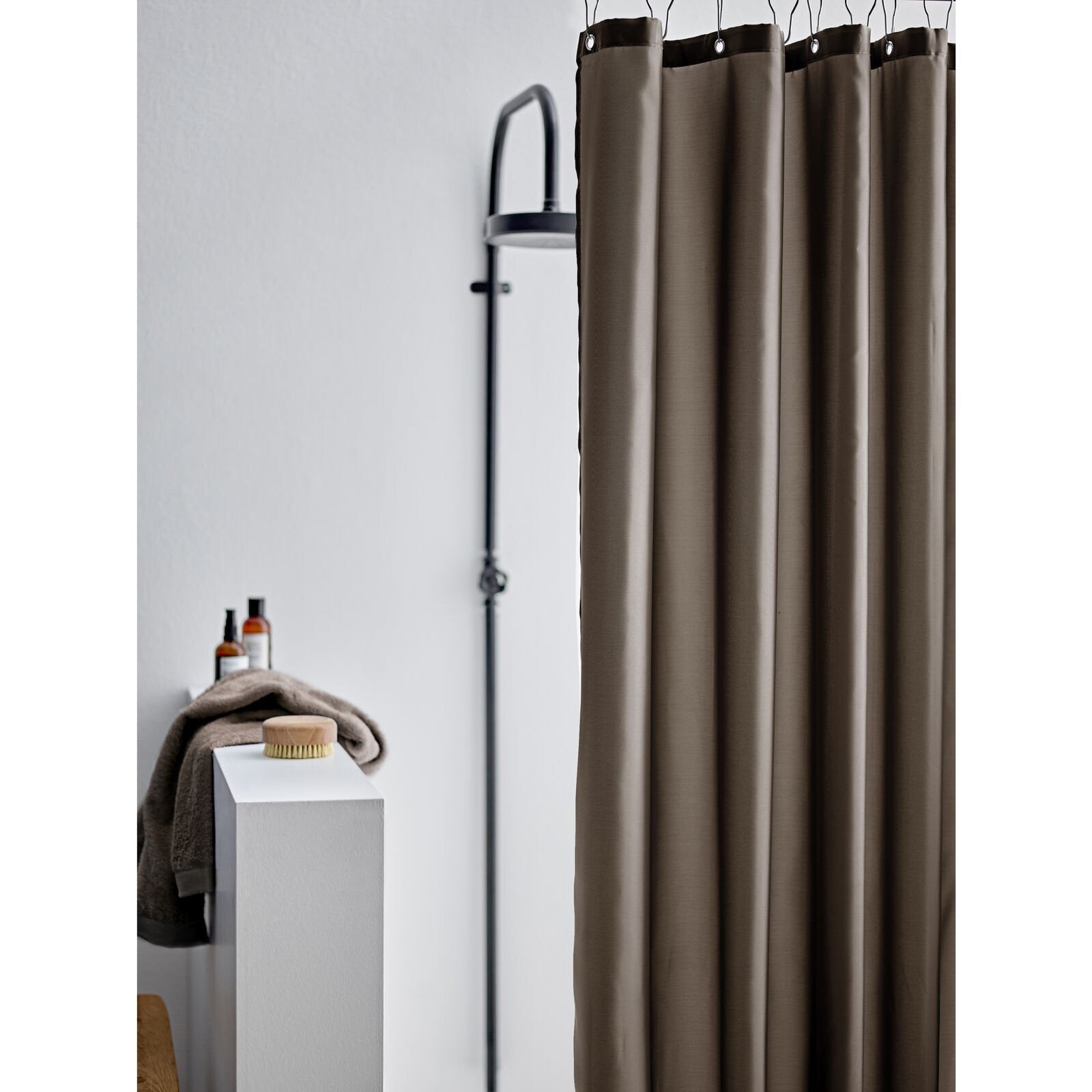 - Färgen på duschdraperiet är taupe