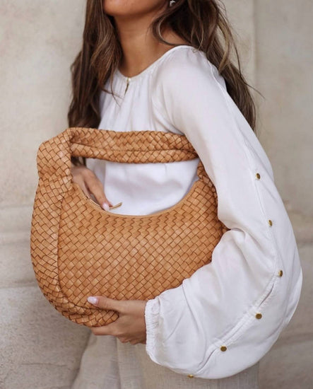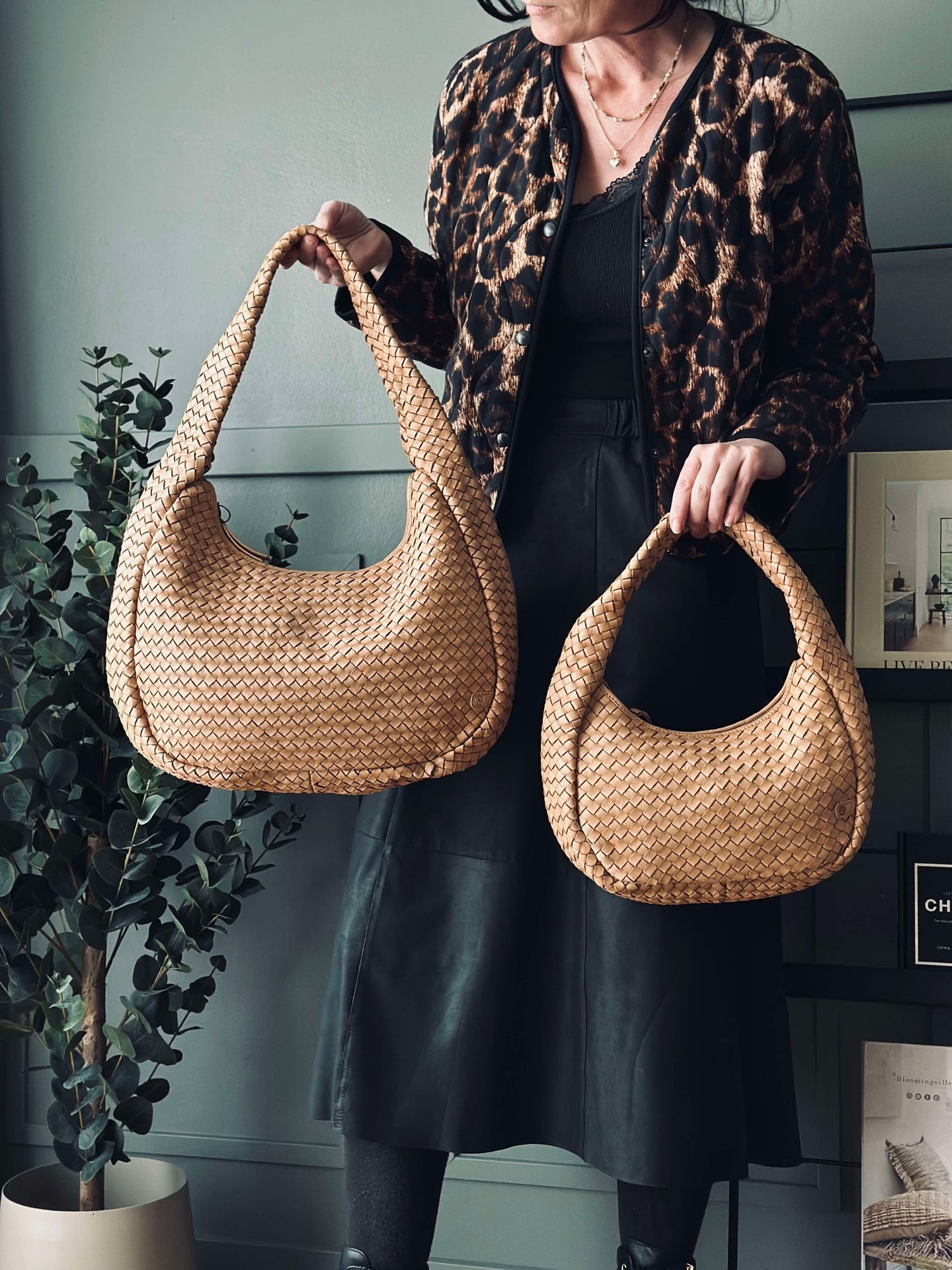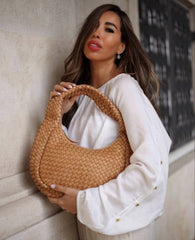 Letar du efter en axelväska som kombinerar stil och funktionalitet? Denna handflätade väska i sandfärg erbjuder både rymlighet och hållbarhet, vilket gör den idealisk för att organisera dina nödvändigheter med lätthet och enkelhet.