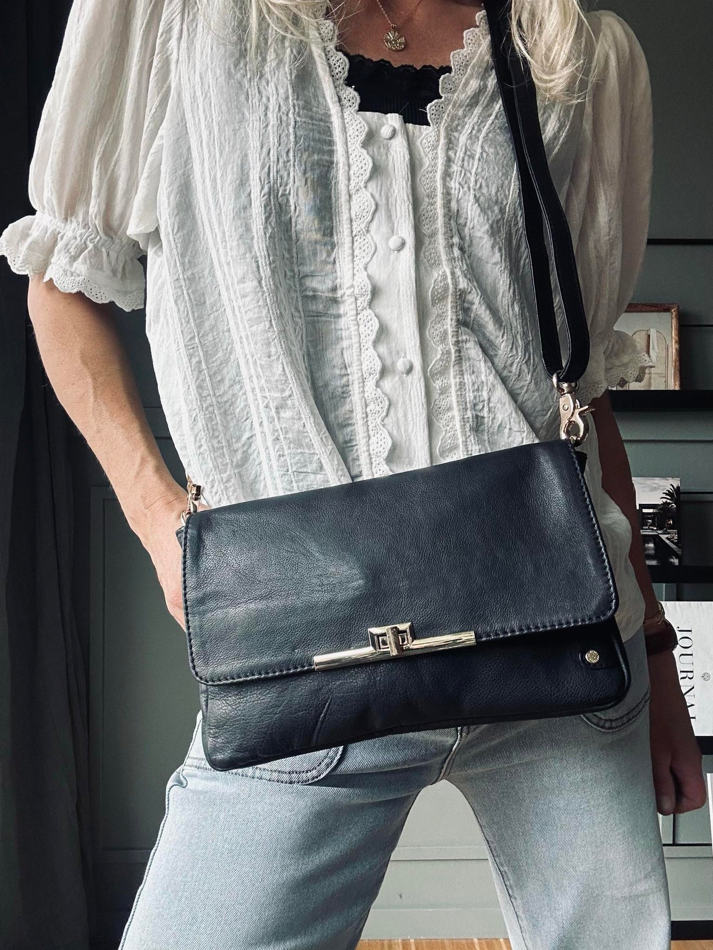 Ge dig själv friheten att bära din vardag med stil och bekvämlighet. Prova denna eleganta kuvertväska och upplev en smidig lösning på dina dagliga bekymmer. Uppgradera din look och känsla med denna praktiska accessoar idag!