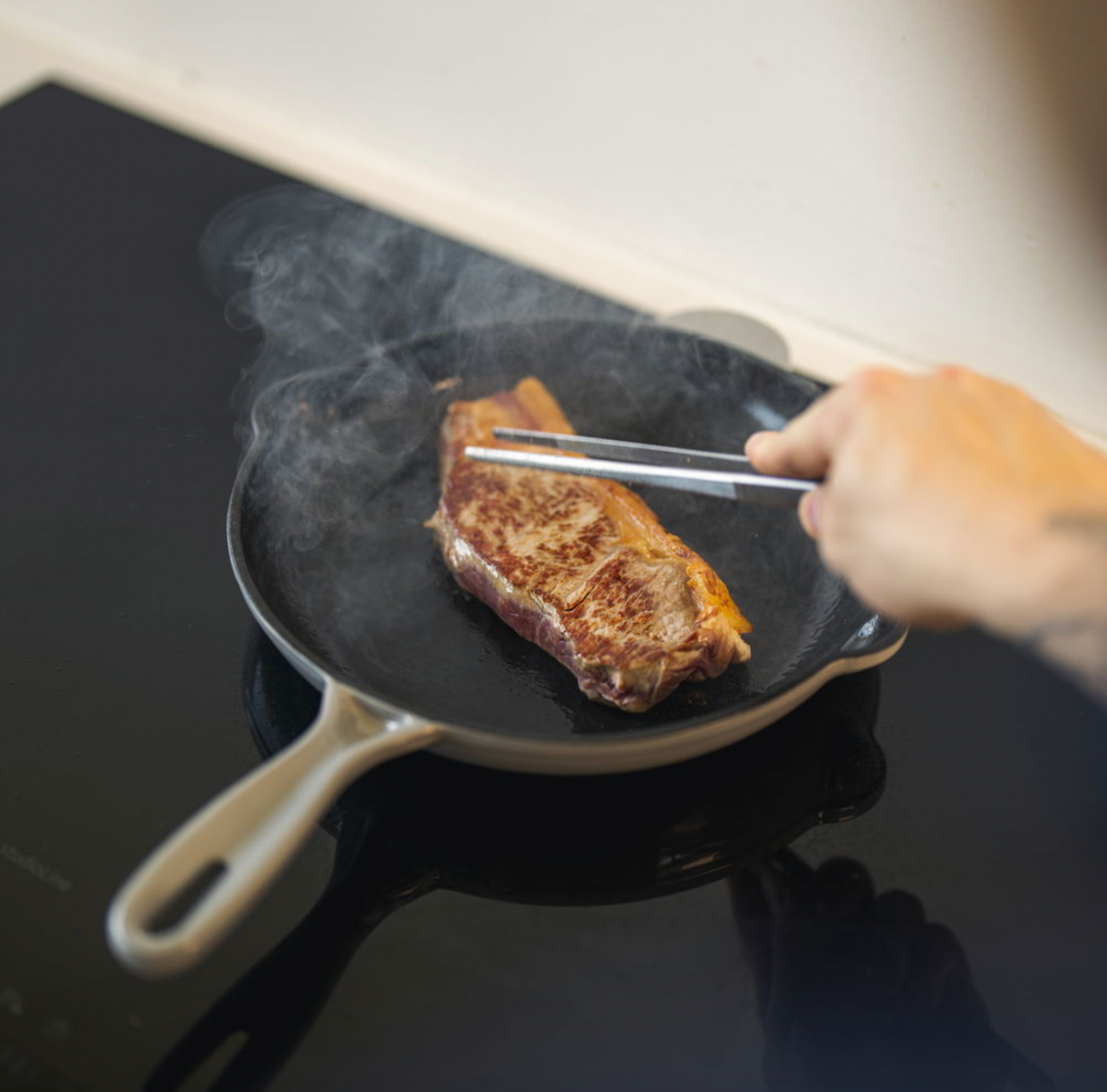 Att stekpannan är tillverkad av äkta gjutjärn innebär att den erbjuder en jämn och pålitlig värmefördelning. Detta gör det enklare att uppnå en fin stekyta och att maten tillagas jämnt. Gjutjärn är också känt för sin hållbarhet, vilket innebär att denna stekpanna kan bli en långvarig följeslagare i köket. Dessutom förbättras stekpannans naturliga non-stick-egenskaper med tiden och användning.