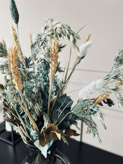 Denna evighetsbukett med torkade blommor skapar en tidlös skönhet i ditt hem. Buketten behåller sin färg och form, vilket gör den till ett hållbart och underhållsfritt alternativ till färska blommor. Den tillför en naturlig och rustik känsla till din inredning och ger en känsla av lugn och harmoni. Tack vare dess långvarighet kan den njutas år efter år.