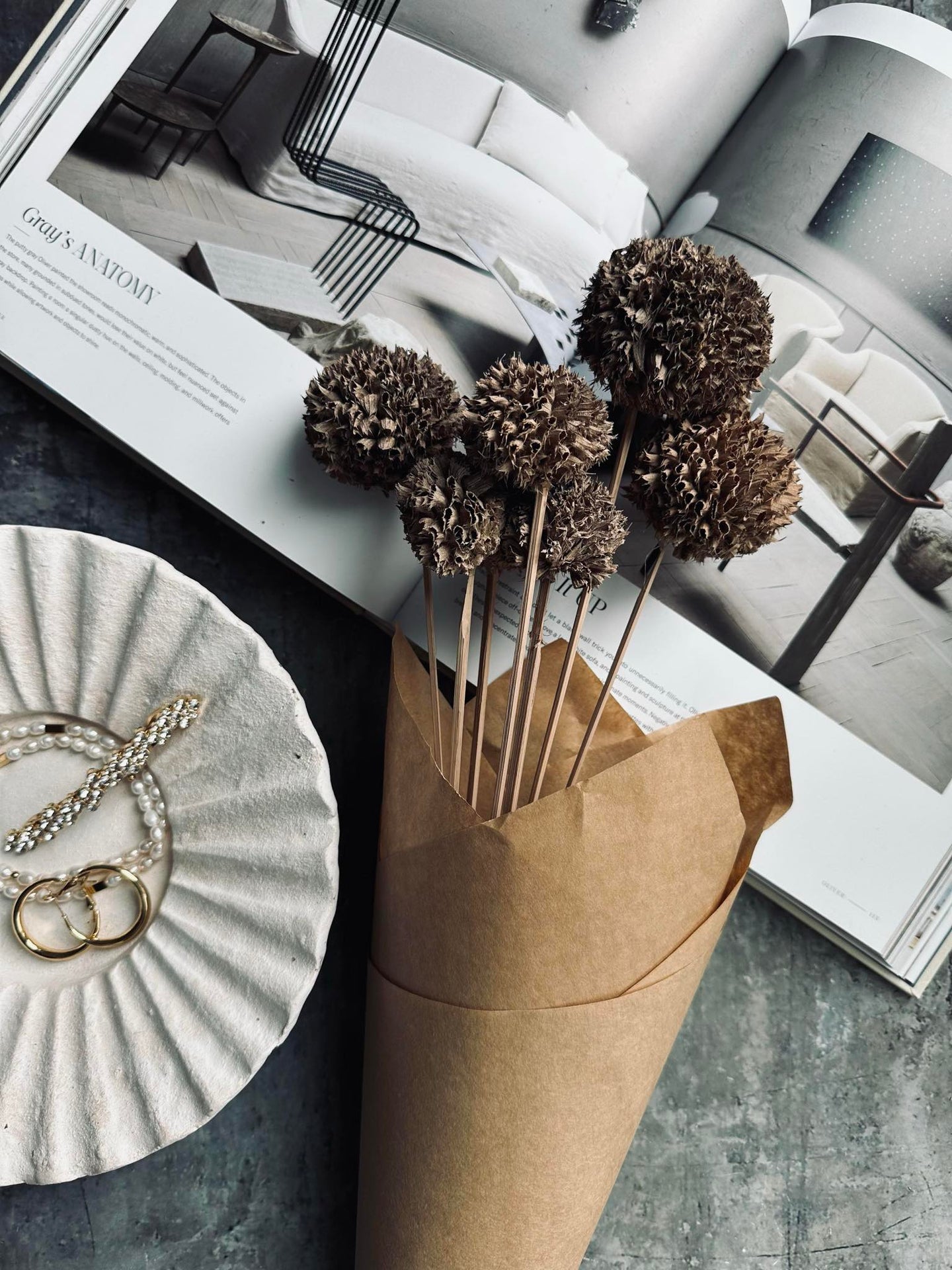 Denna evighetsbukett erbjuder en långvarig och underhållsfri lösning för att försköna ditt hem. Med ett knippe stjälkar skapas en naturlig och harmonisk atmosfär som varar långt längre än traditionella blomsterarrangemang. Denna bukett kräver ingen vattning eller speciell skötsel, vilket gör den till ett praktiskt val för dem som vill njuta av blommornas skönhet utan den dagliga skötseln.
