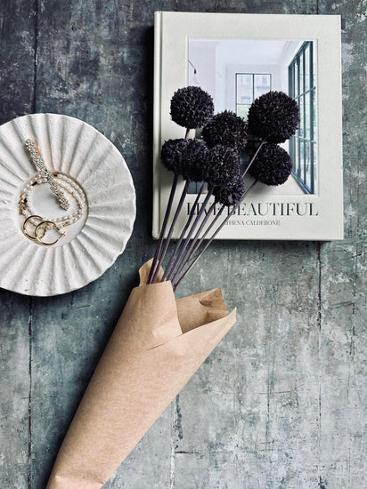 Blomsterbuketten består av en bunt stjälkar, vilket ger en naturlig och balanserad känsla i ditt hem. Stjälkarnas struktur bidrar till att hålla blommorna på plats, samtidigt som de skapar en harmonisk symmetri. Denna sammansättning gör det enkelt att arrangera buketten i olika vaser och utrymmen, vilket ger flexibilitet att förändra atmosfären i rummet.