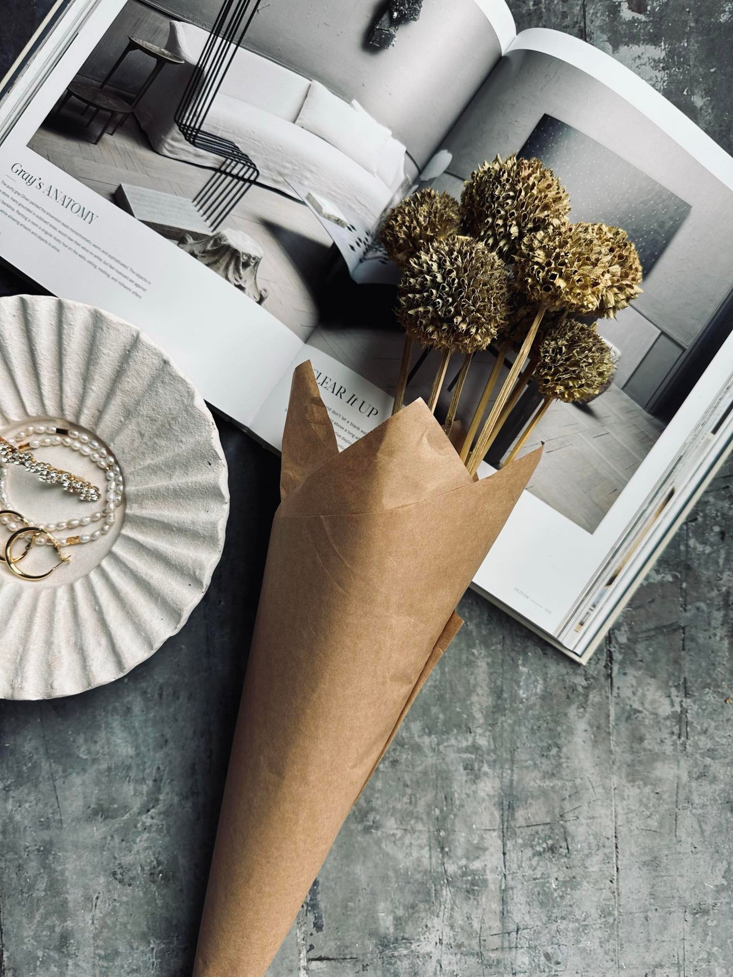 Blomsterbuketten består av en bunt av stjälkar, vilket ger en naturlig och harmonisk känsla till vilket rum som helst. Varje stjälk bidrar med en särpräglad textur och variation, vilket skapar en dynamisk visuell upplevelse. Genom att integrera denna mångfald i din inredning kan du enkelt förändra atmosfären i ditt hem och skapa en trivsam miljö.