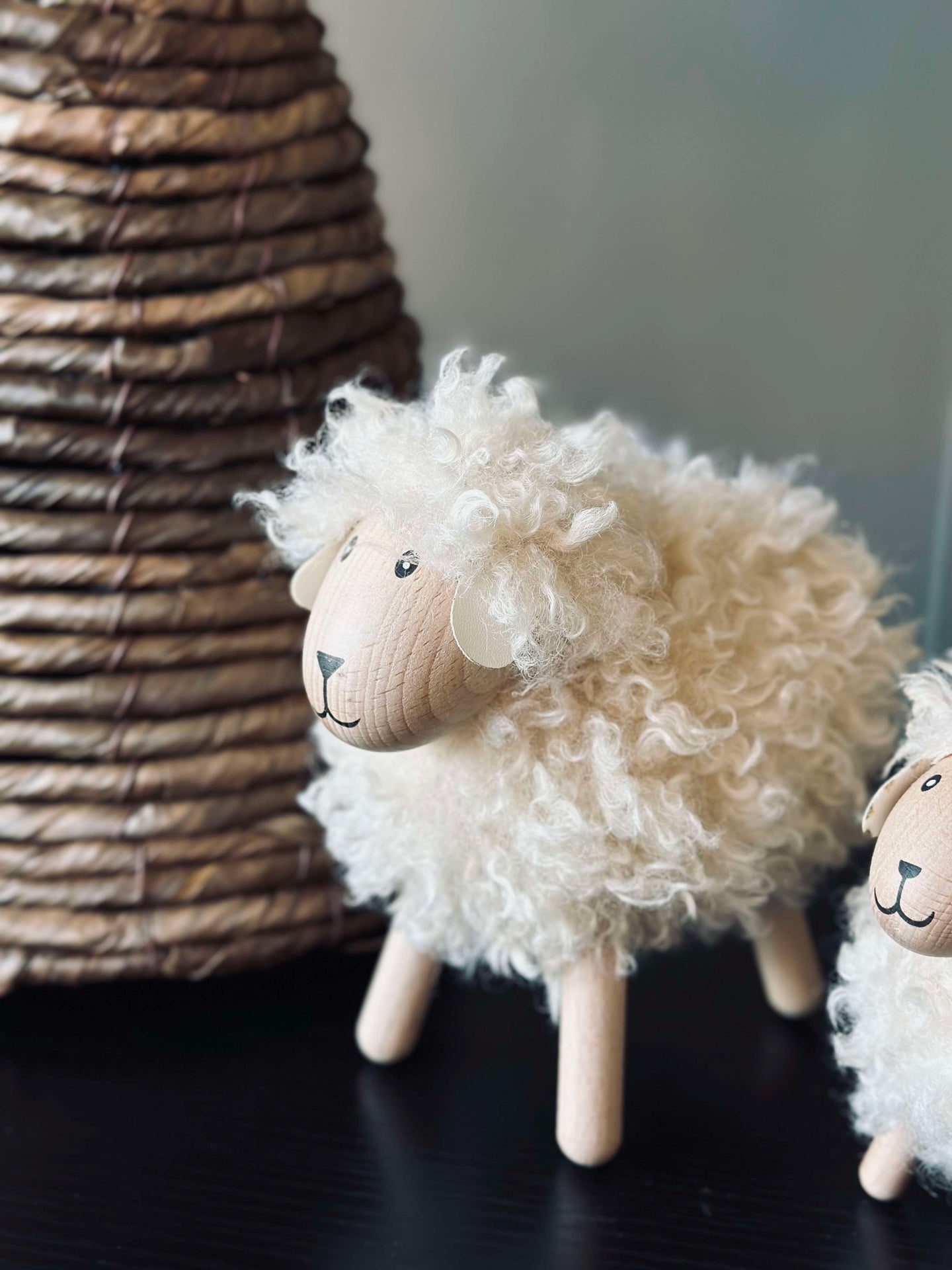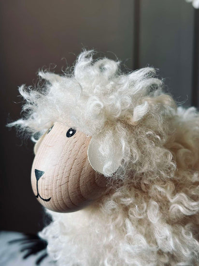 - Fårfiguren är tillverkad av massivt trä