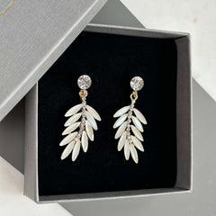 Dessa örhängen erbjuder ett subtilt och naturligt uttryck tack vare deras fjäderlika design. De harmoniska färgerna skapar en visuell balans som kan komplettera olika stilar och tillfällen. Dessutom ger den lätta känslan av fjädrarna komfort vid användning, vilket gör dem till ett praktiskt alternativ för dagligt bruk.