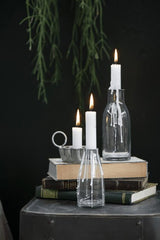 Den unika designen av denna ljusstake, formad som en flaska med insats, tillför en innovativ och modern känsla till din inredning. Den erbjuder möjligheten att använda både större blockljus och mindre värmeljus, vilket ger en flexibel belysningslösning. Denna ljusstake skapar en mysig atmosfär och förhöjer varje rum med sin distinkta estetik.