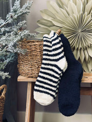 Strumporna är tillverkade av mjuk fleece, vilket ger en behaglig och varm känsla mot huden. Fleece-materialet erbjuder en naturlig isolering som håller fötterna varma även under kalla dagar. Den mjuka texturen minimerar risken för irritation och är skonsam mot huden, vilket gör dem lämpliga för dagligt bruk. Fleecens andningsförmåga hjälper dessutom till att hålla fötterna torra och bekväma hela dagen.