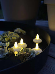 Trött på att hålla koll på när det är dags att släcka ljusen? Med Flytande ljus löser du detta enkelt. De tänds och släcks av sig själva, vilket ger en bekymmersfri stämning i ditt hem utan att du behöver tänka på det.
