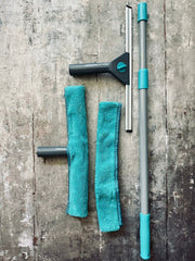 Inkluderar teleskopstav, skrapa, fönstertvättare och två mikrofiberdukar