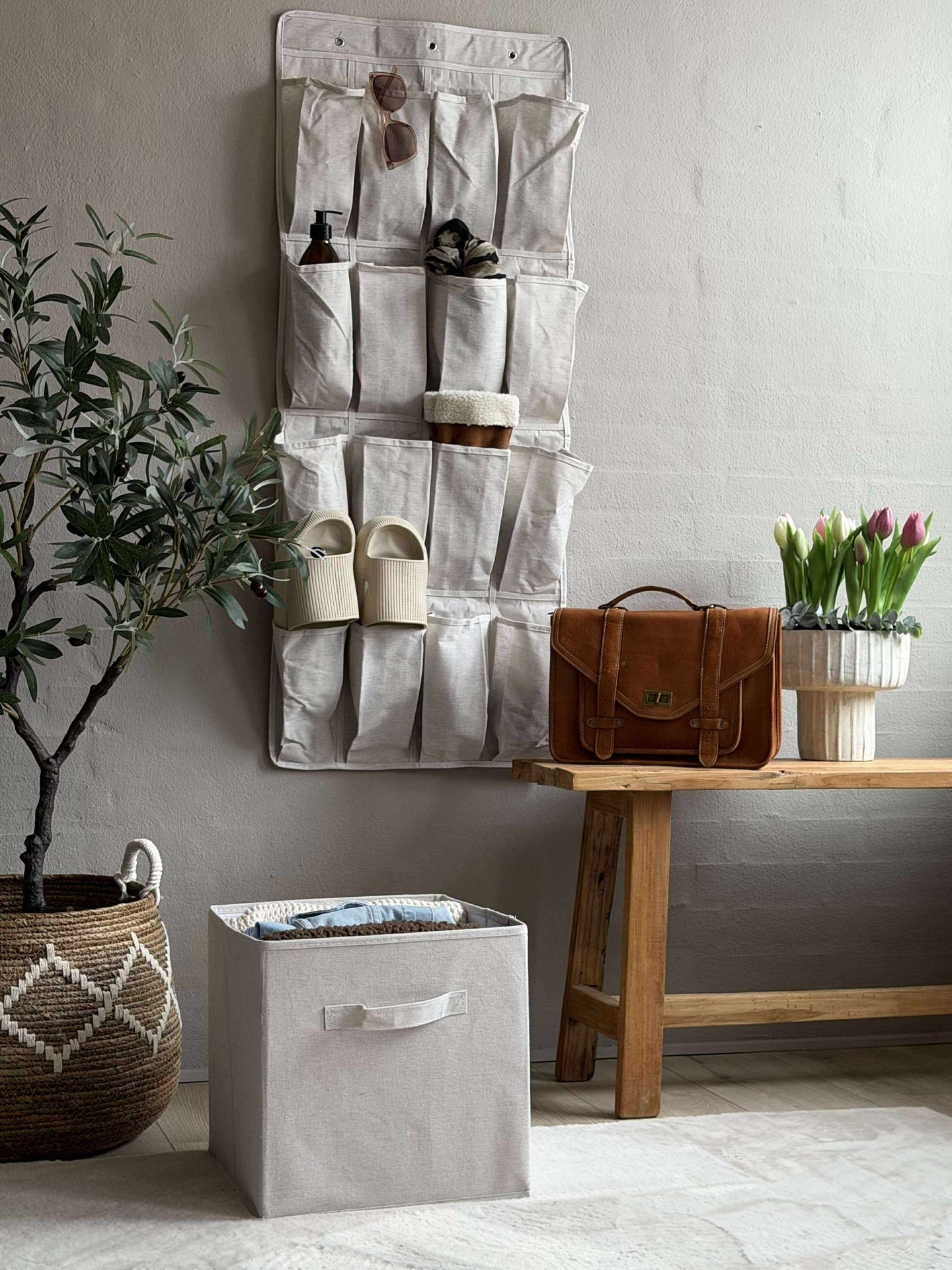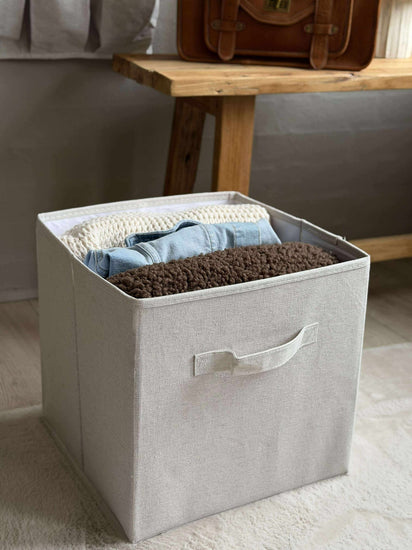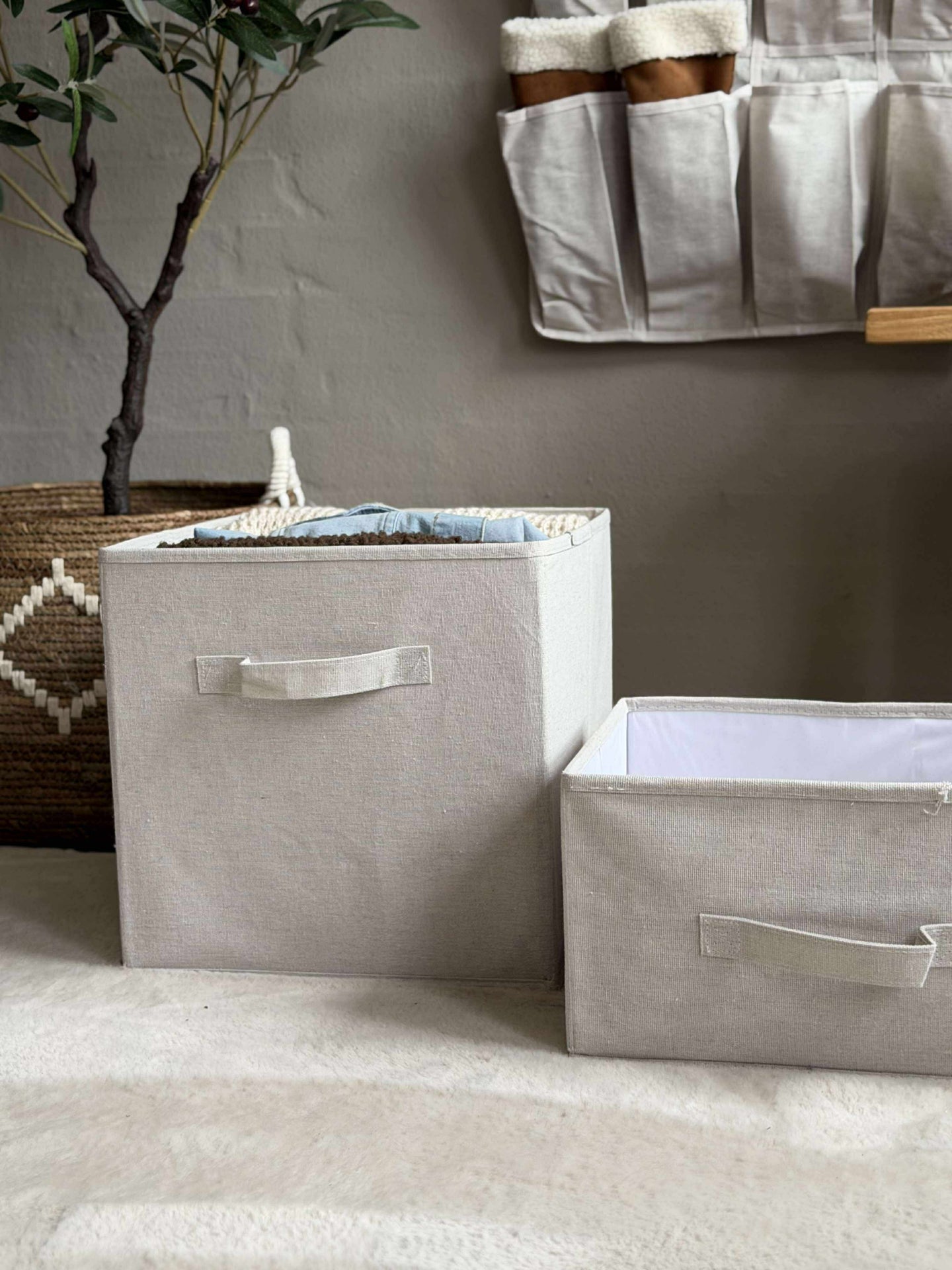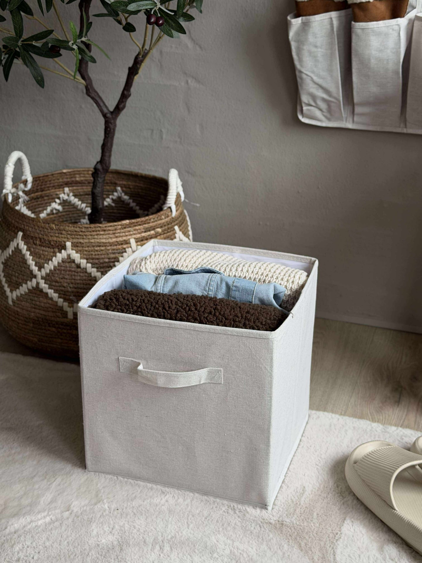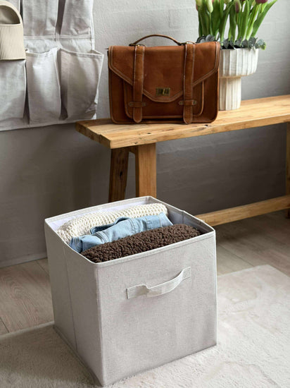 Trött på röran? Förvaring BELLA-30x30 erbjuder en stilren lösning för att organisera större föremål hemma. Anpassad för att enkelt matcha med ljus canvasdesign kan denna praktiska låda integreras med resten av din inredning för en harmonisk känsla.