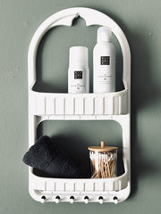 Duschförvaringen är tillverkad av plast, vilket gör den både lätt och hållbar. Materialet motstår fukt och mögel, vilket är en fördel i badrumsmiljöer där vattenanvändningen är frekvent. Plastens flexibilitet bidrar till enkel installation och anpassning till olika duschutrymmen. Dessutom är plast lätt att rengöra, vilket underlättar underhållet av en hygienisk miljö.