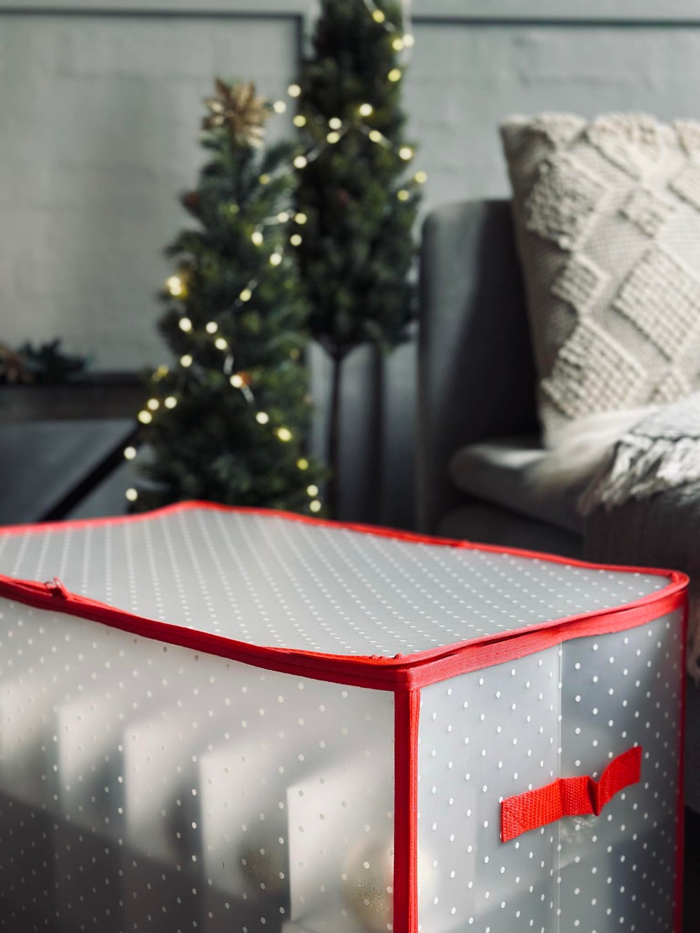 Julkulförvaring är tillverkad av plast, vilket ger flera praktiska fördelar. Plast är lätt och hållbart, vilket gör det enkelt att flytta och hantera förvaringen utan att riskera skador. Dessutom är plastmaterialet motståndskraftigt mot fukt, vilket är särskilt användbart under vintermånaderna när luftfuktigheten kan vara högre. Detta säkerställer att dina juldekorationer skyddas och hålls i gott skick år efter år.