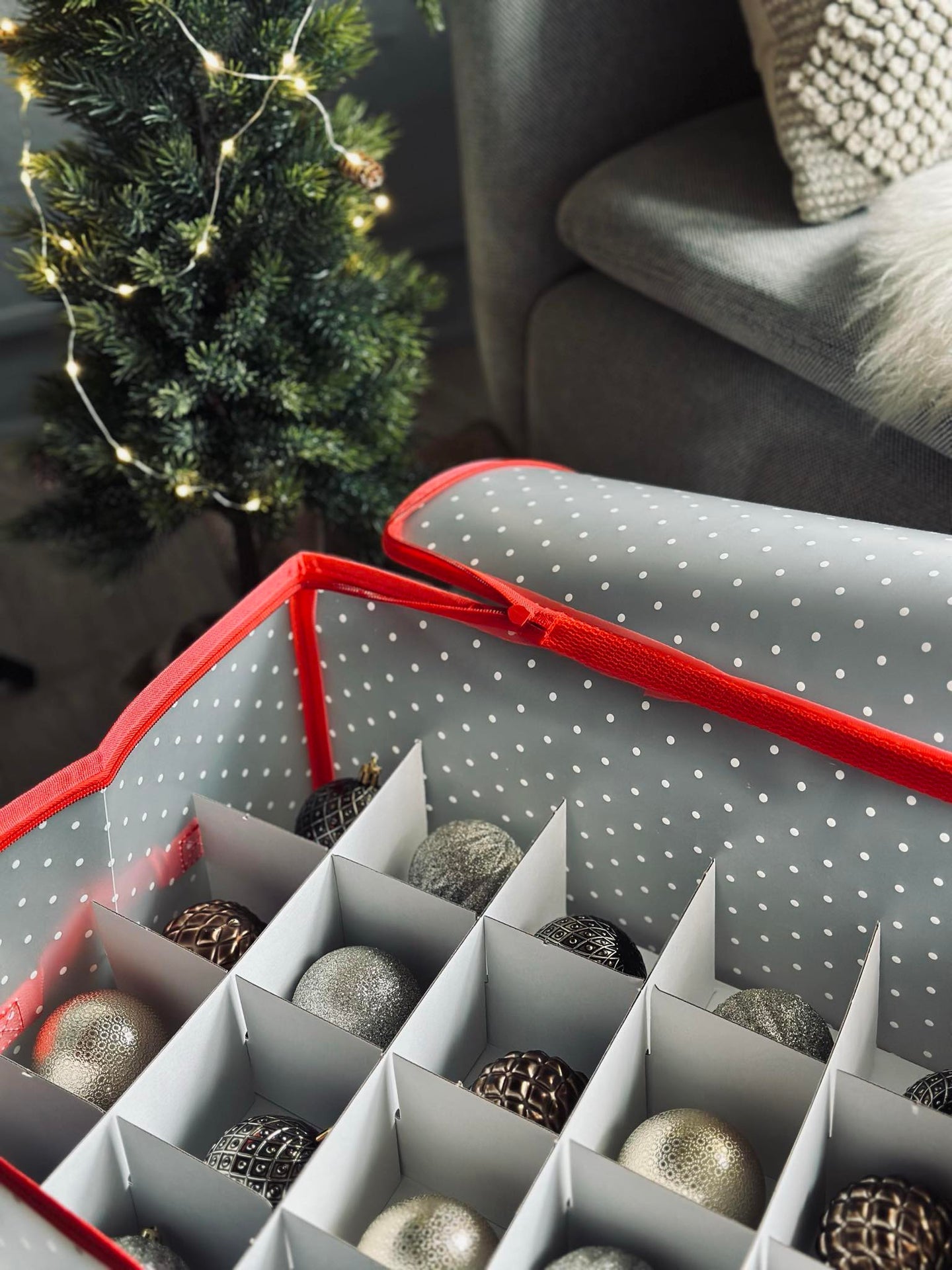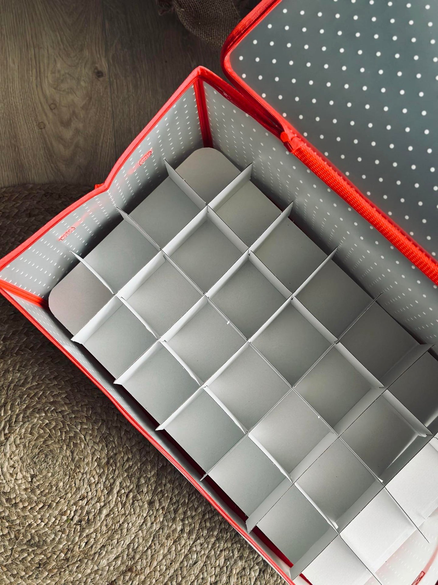 Trött på att leta efter julkulor i röriga lådor? Håll ditt julpynt organiserat och lättillgängligt med denna praktiska förvaringslösning. En robust design som förenklar din julstädning och skyddar dina dekorationer från skador, vilket sparar tid och frustration.