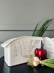 Vår kylskåpskorg är utformad med en bra storlek för att enkelt kunna förvara dina grönsaker eller drycker. Detta optimerar utrymmet i ditt kylskåp och hjälper till att hålla dina matvaror organiserade och lätt åtkomliga. Med denna korg kan du effektivt utnyttja utrymmet i ditt kylskåp och skapa en mer strukturerad förvaring.