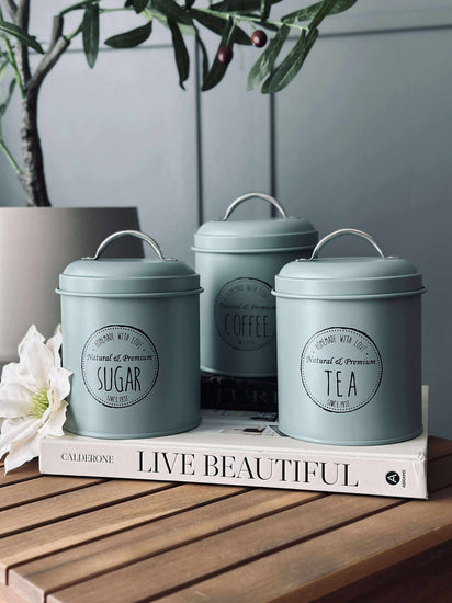 Trött på oorganiserade köksskåp? Med dessa tre dammigt gröna förvaringsburkar får ditt hem både stil och funktionalitet. Utmärkta för matförvaring och enkel sortering. Dessa metallburkar hjälper dig att hålla ordning och reda på ett praktiskt sätt.