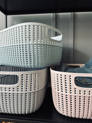 Denna förvaringskorg är tillverkad av högkvalitativ plast, vilket garanterar att den håller länge. Den robusta konstruktionen innebär att korgen kan tåla dagligt slitage i ditt badrum utan att förlora sin form eller funktionalitet. Dessutom är plastmaterialet lätt att rengöra, vilket gör denna förvaringskorg till ett praktiskt och hållbart tillbehör för ditt badrum.