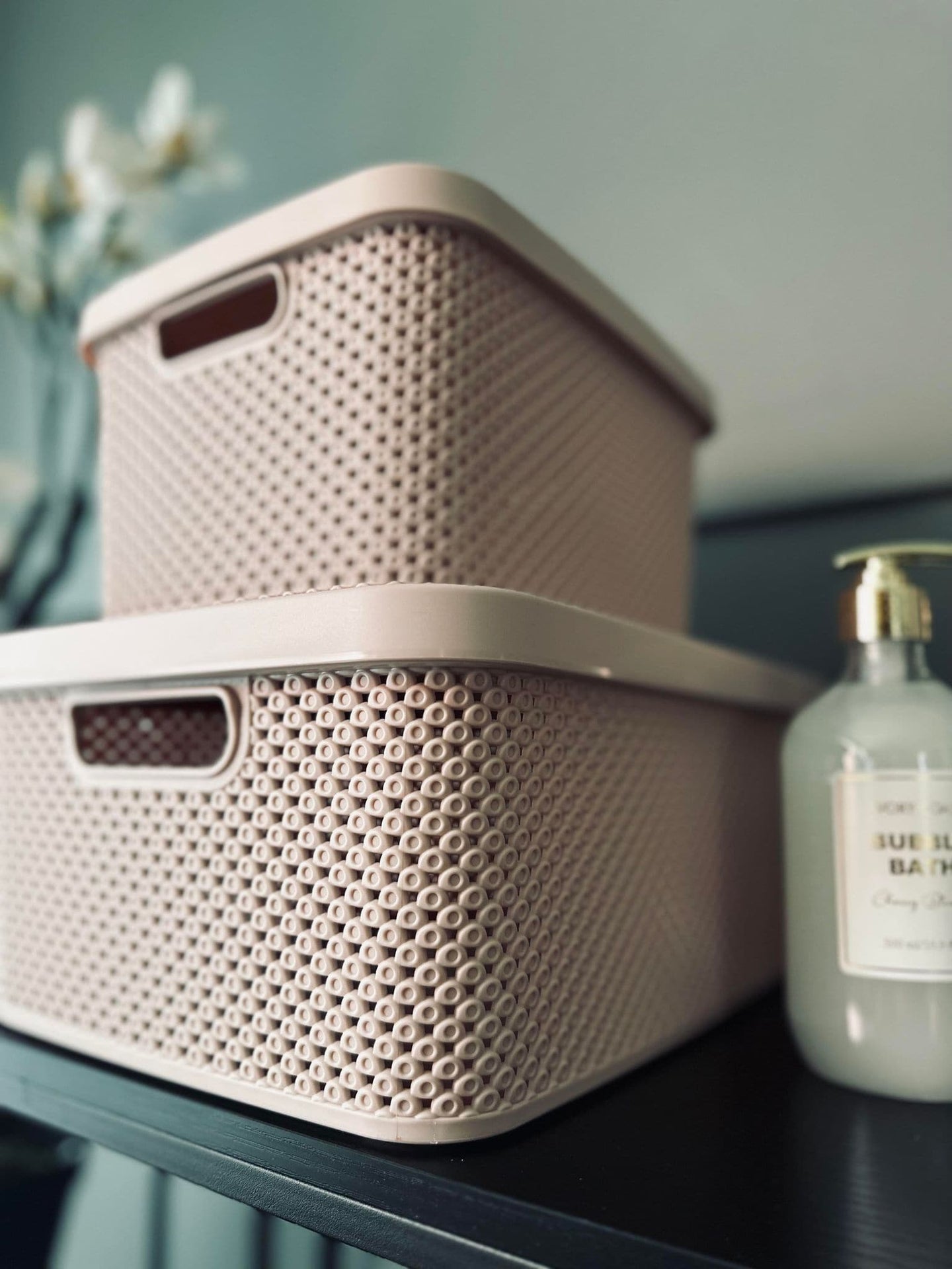Organisera ditt liv och spara tid med denna rosa förvaringslåda. Sluta leta och börja njuta av ett välorganiserat rum. Skapa lugn och harmoni med denna stilfulla lösning för dina förvaringsbehov. Ge dig själv gåvan av ordning idag!