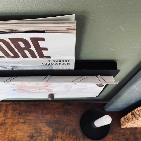 - Möjliggör upphängning av papper med magneter och förvaring av upp till 60 A4-ark inuti