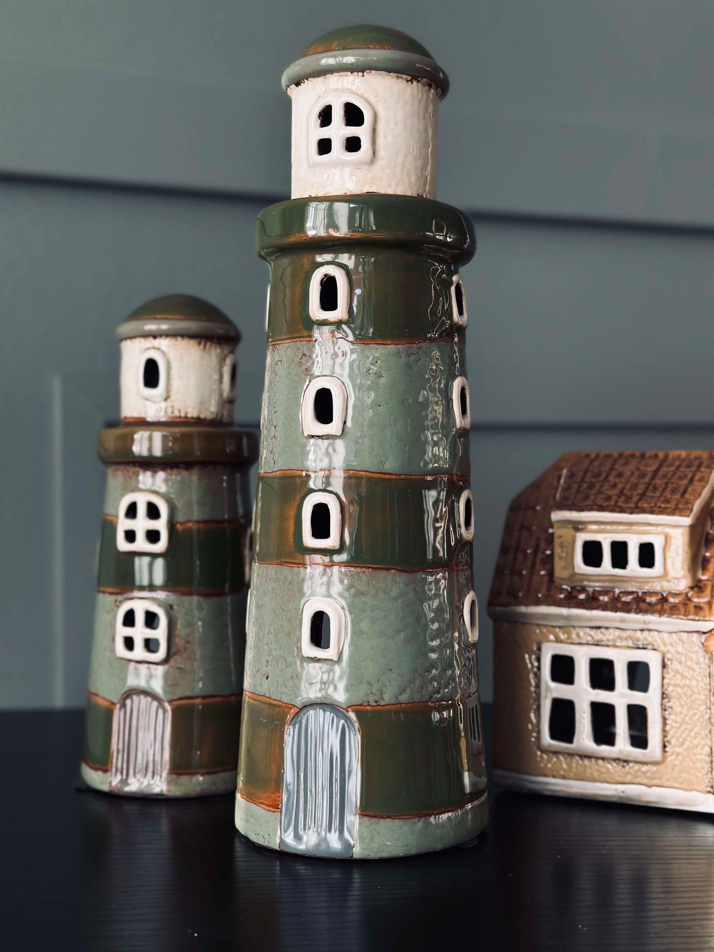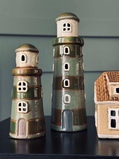 Trött på vanliga ljushållare som inte riktigt passar in? Fyrtorn Keramik - Grön Stor skapar en mysig atmosfär och tillför stil till ditt hem. Ge ditt utrymme en touch av något nytt och dekorativt med denna speciella ljushållare.
