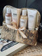 Skönhetssetet innehåller en kosmetikväska med fem delar, vilket ger en organiserad och smidig lösning för dina dagliga skönhetsrutiner. Varje del är noggrant utvald för att möta olika behov, vilket gör det enkelt att hålla ordning på dina produkter. Kosmetikväskan säkerställer att alla dina tillbehör är lättillgängliga och skyddade, vilket sparar tid och förenklar dina morgonrutiner.