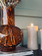 - Glasvasen är tillverkad av gyllenfärgat glas