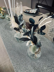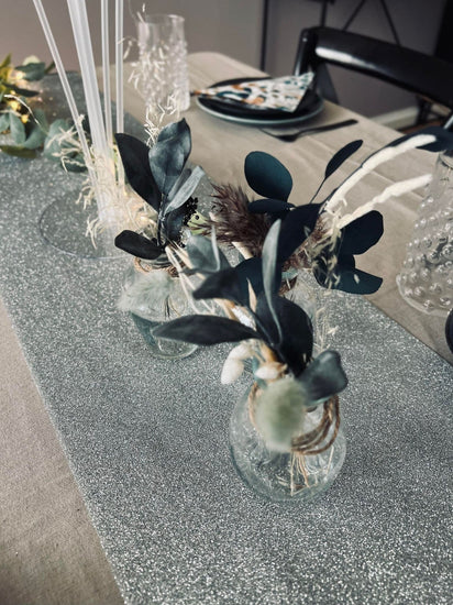 Förvandla din middagsupplevelse till en verklig fest med vår Glitter Bordlöpare. Denna lyxiga löpare ger din dukning en extra gnista och skapar en sofistikerad atmosfär, perfekt för att imponera på gäster under festliga tillfällen.