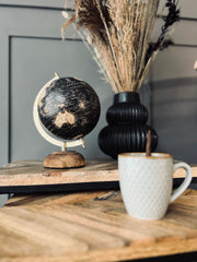 Vår dekorativa globus är utrustad med en stabil träfot som tillför en rustik och naturlig känsla till din inredning. Träfoten bidrar inte bara till en stabil placering av globusen, utan ger också din inredning en varm och jordnära touch. Oavsett om du placerar den i vardagsrummet, kontoret eller biblioteket kommer denna detalj att tillföra en unik karaktär till rummet.