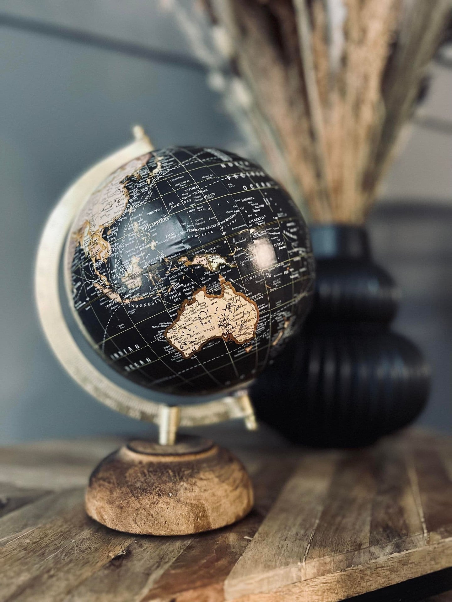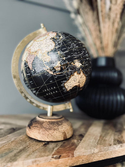 Globus på träfot - Svart