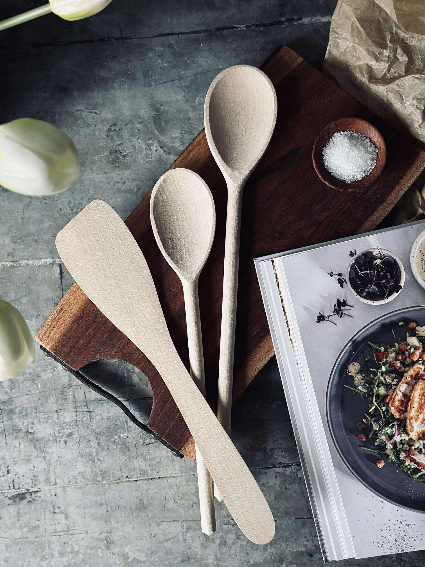 Grytsked är tillverkad av bok, ett material som är känt för sin hållbarhet och styrka. Bokträets naturliga egenskaper gör att skeden är motståndskraftig mot slitage och värme, vilket gör den lämplig för daglig användning i köket. Dessutom ger bokens fina struktur en mjuk känsla i handen, vilket bidrar till en bekväm användarupplevelse vid matlagning.