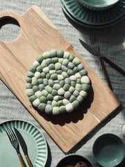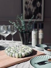 När du vill skydda dina ytor från värme utan att kompromissa med stil, erbjuder Grytunderlägget DOTS - Grön ullmix en effektiv och estetisk lösning. Diskret designad för att smälta in i ditt hem och samtidigt ge funktionell värmeisolering.