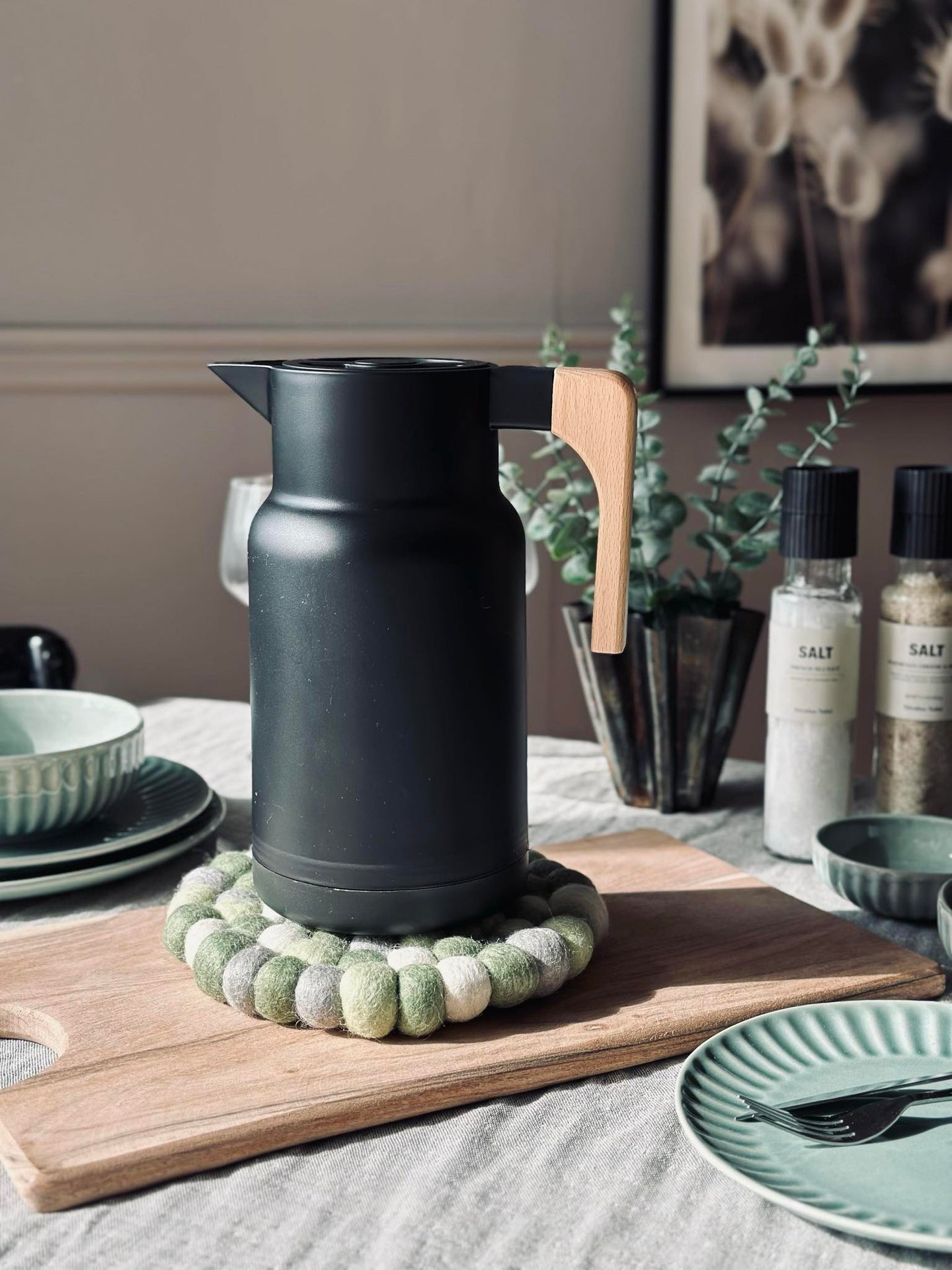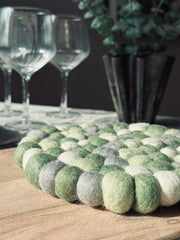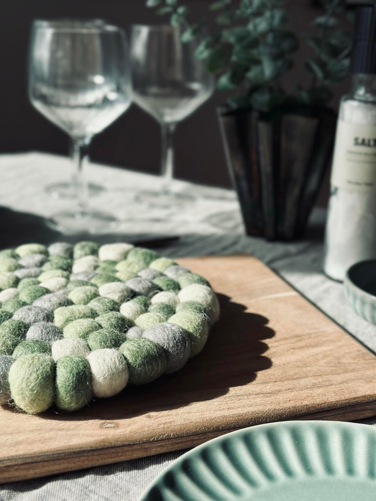 Ge dina ytor den omtanke de förtjänar med Grytunderlägget DOTS - Grön ullmix. Låt ditt hem vara både vackert och skyddat från värme, med en diskret touch av stil. Upplev skillnaden med vårt ullbordskåner idag!