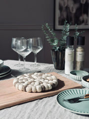 Trött på att lämna märken på bordet? Grytunderlägget DOTS erbjuder en stilren lösning för att skydda dina ytor. Med sitt naturliga material och tidlösa design passar det enkelt in i ditt hem och hjälper till att bevara ytorna fina.