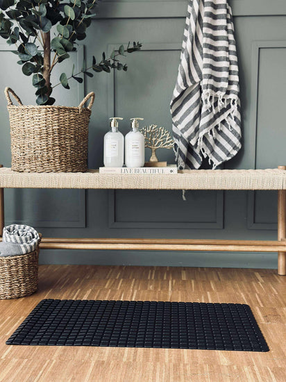 Skapa en trygg och bekväm miljö i ditt badrum med den halkfria badrumsmattan i svart. Slipp oron för att halka på det våta golvet och njut av varje steg med stabilitet och säkerhet. Uppgradera ditt badrum idag för en fridfull och avslappnande upplevelse!