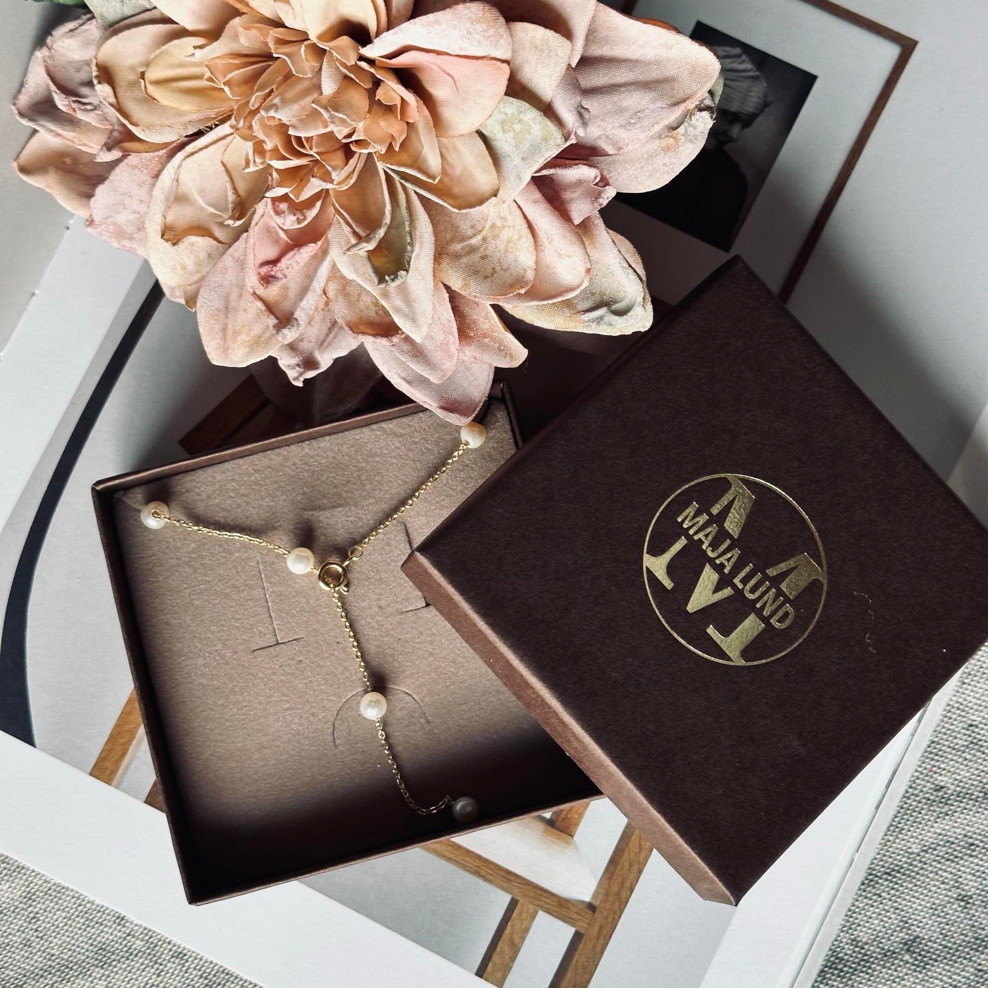 - Halsbandet innehåller äkta sötvattenspärlor