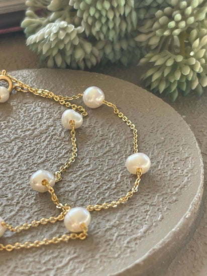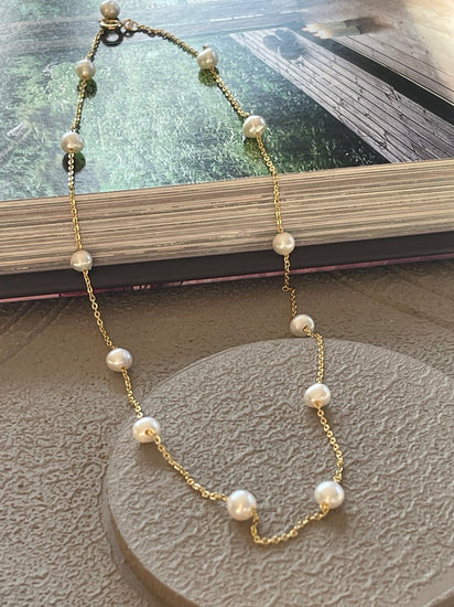 Äkta sötvattenspärlor i halsbandet