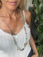 Detta halsband är tillverkat av mässing och belagt med 18K guld, vilket ger det en tidlös glans och hållbarhet. Mässingen bidrar med styrka och stabilitet, medan guldpläteringen ger en varm och inbjudande lyster. Kombinationen av dessa material skapar en känsla av lyx som kan komplettera både vardags- och festkläder, samtidigt som det är motståndskraftigt mot vardagligt slitage.