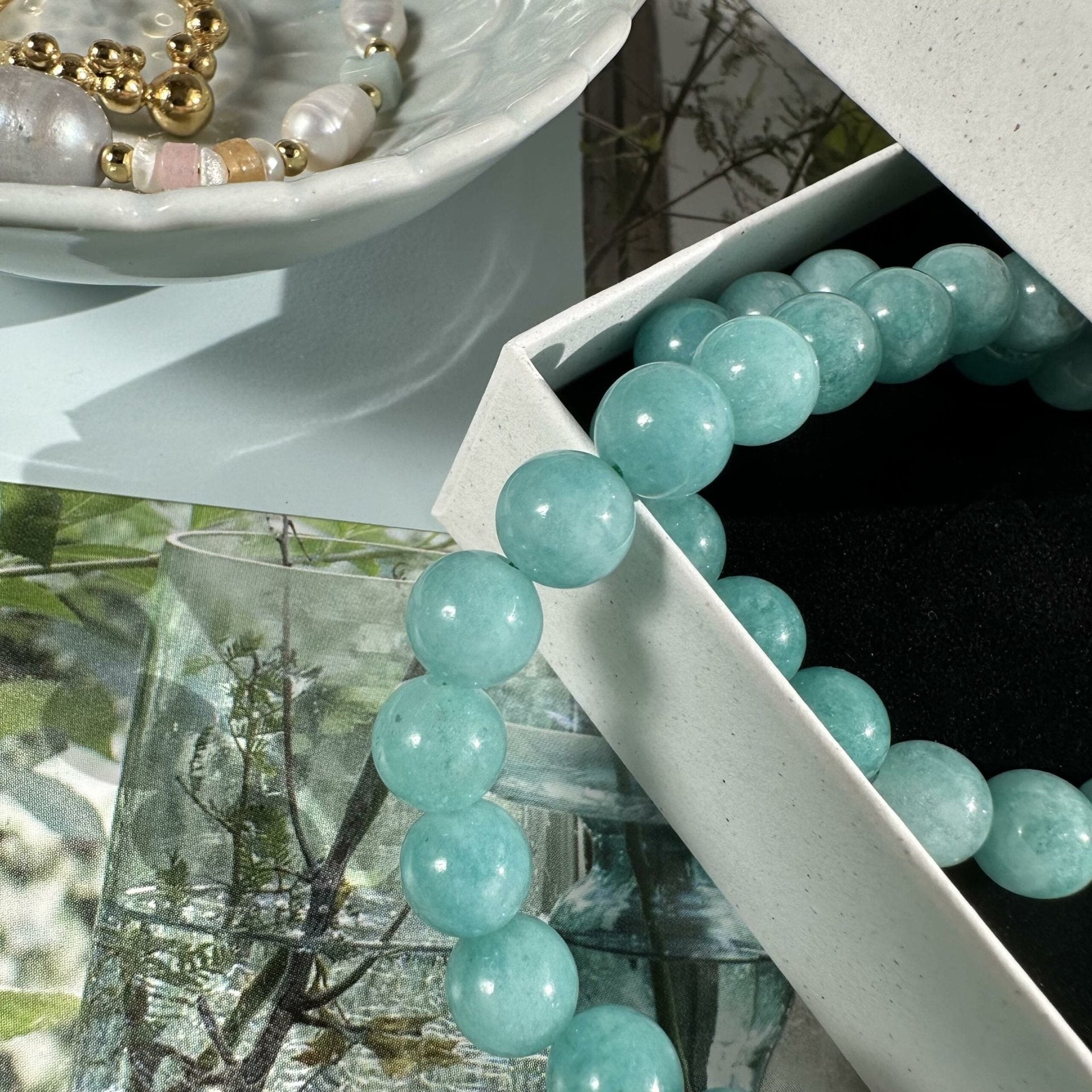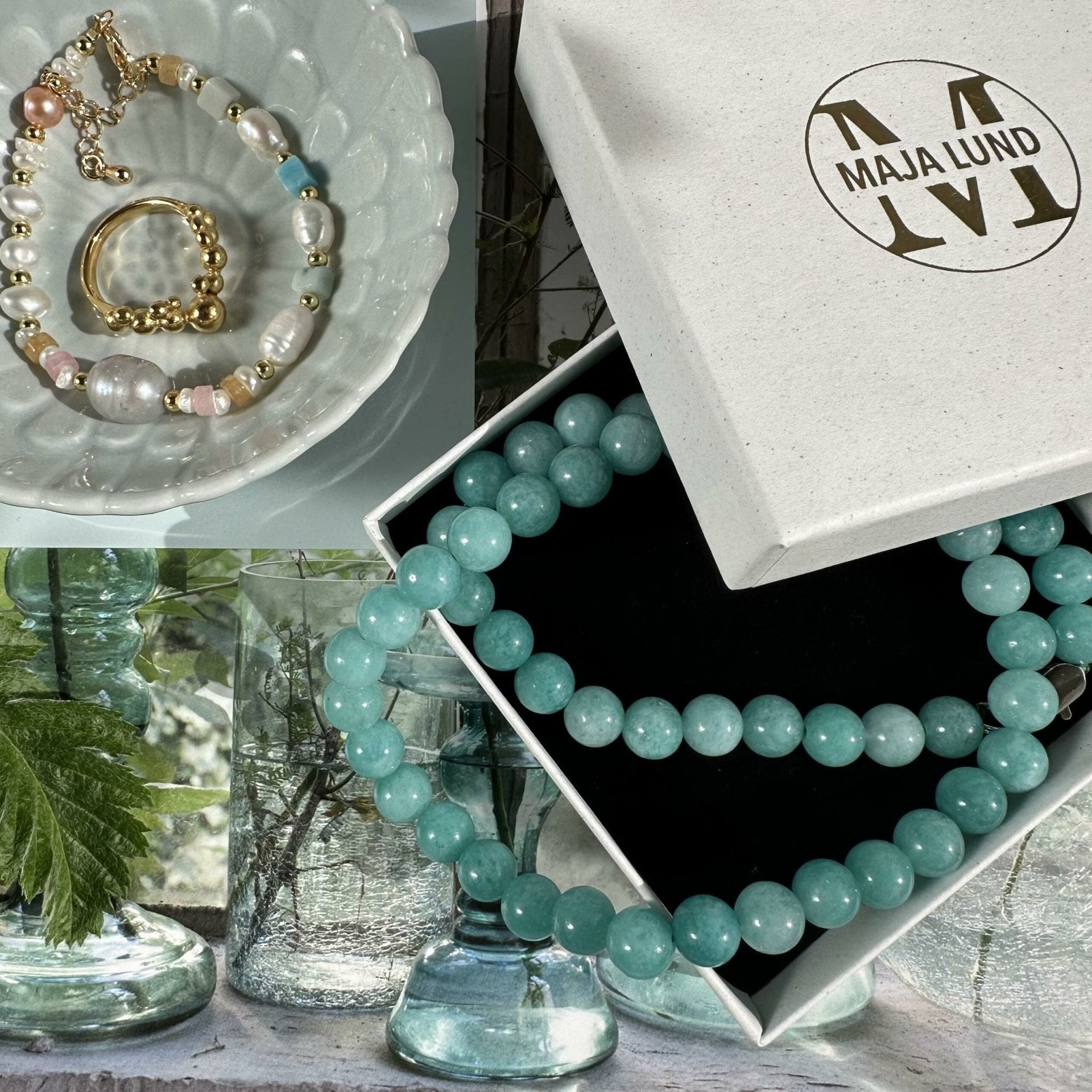 - Gjort av vackra aqua naturstenar, varje sten är 7 mm