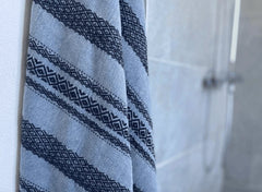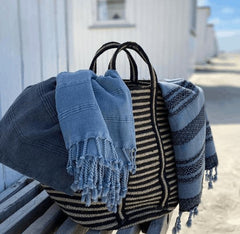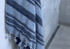Njut av en praktisk och stilren lösning för dagliga badrutiner och utomhusaktiviteter med vår blå Hamam handduk. Den löser problemet med bulkiga badhanddukar och erbjuder komfort, användbarhet och estetisk elegans till din livsstil.
