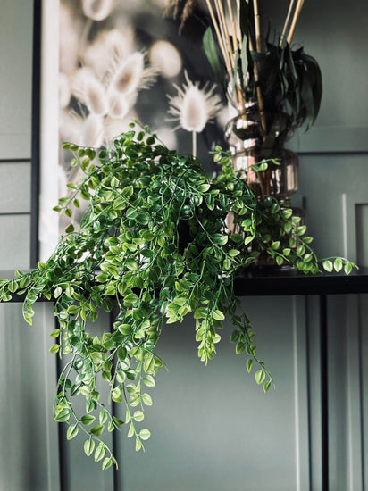 Kämpar du med att hålla dina inomhusväxter vid liv? Med 'Hängande växt grön' för 71.5 kr, kan du njuta av det levande inslaget av gröna växter i din inredning utan något underhåll.