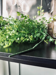 Den dekorativa, plasttillverkade hängande växten är en lätt och hållbar lösning för att förbättra din hemmiljö. Den är tillverkad av högkvalitativ plast, vilket gör den långvarig och enkel att underhålla. Denna hängande växt erbjuder en naturlig och levande touch till ditt inredningsschema utan behovet av konstant vård eller vattning. Dessutom kan den enkelt hängas på valfri plats, vilket ger flexibilitet i designen.