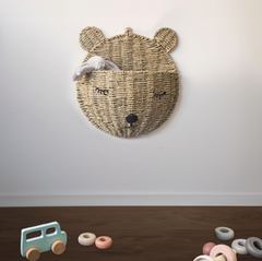 Väggkorgen för förvaring i barnrummet kommer i en naturlig färg, vilket ger en varm och inbjudande känsla till rummet. Den naturliga färgen gör att korgen enkelt smälter in med olika inredningsstilar, samtidigt som den tillför en touch av natur. Detta kan bidra till att skapa en lugn och harmonisk miljö för barnen.