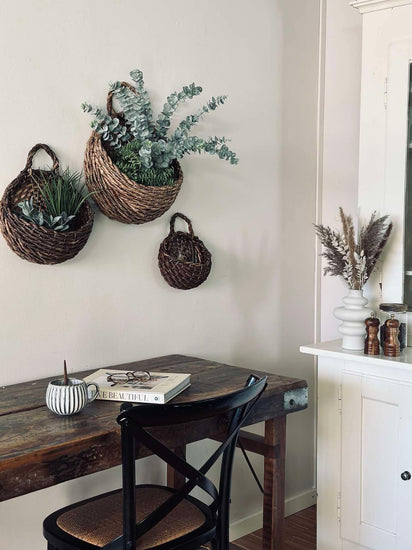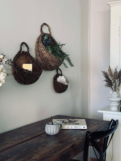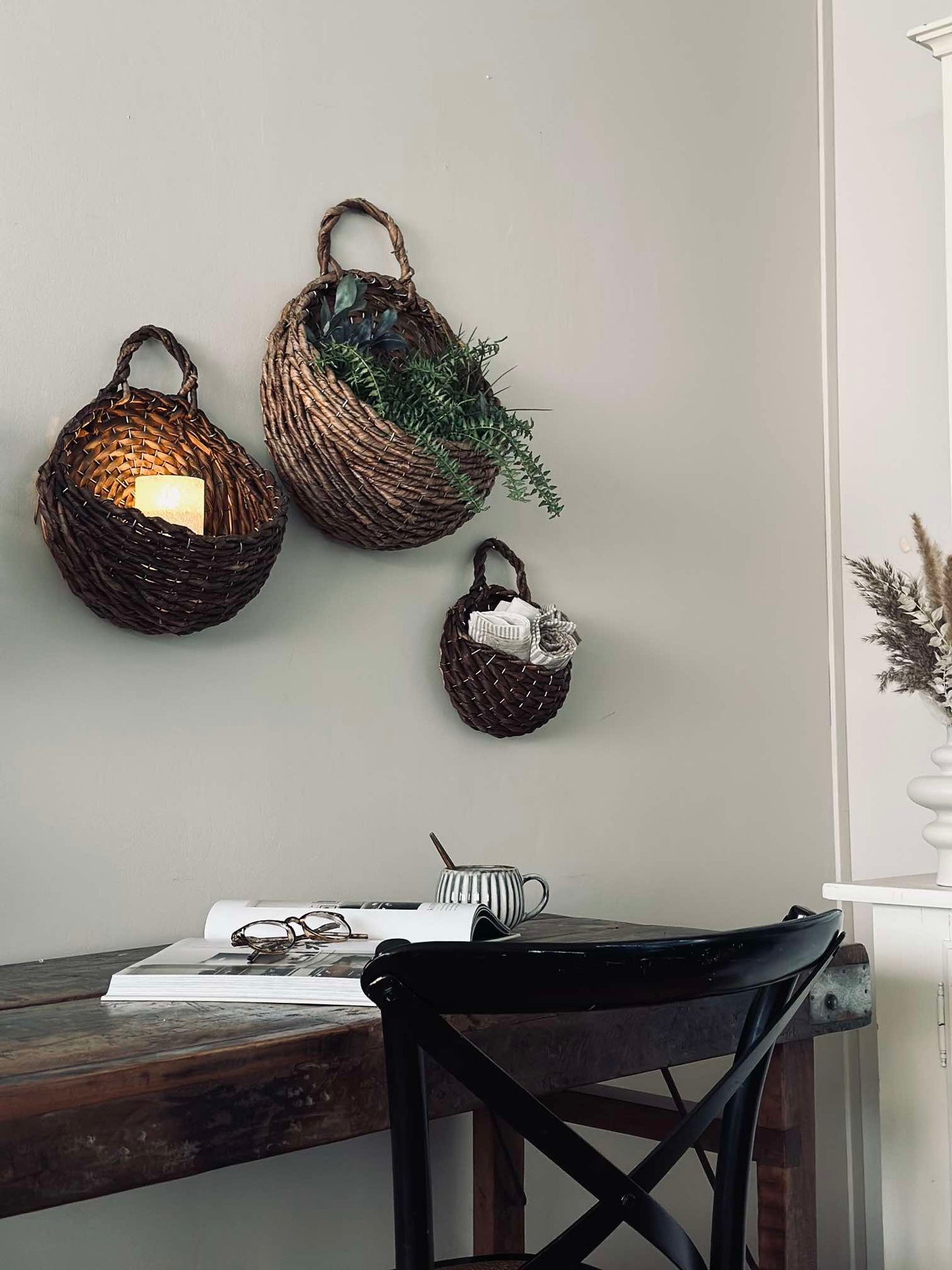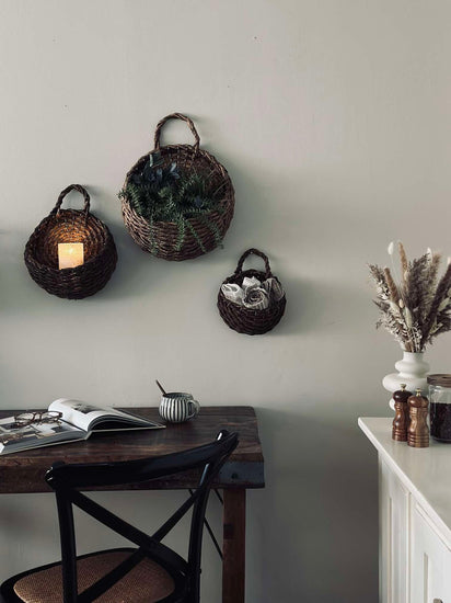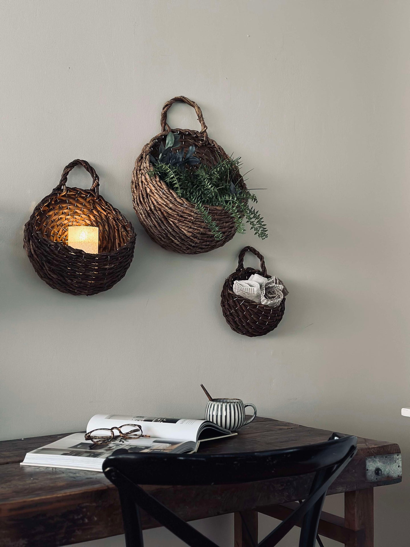Trött på att leta efter praktiska förvaringslösningar som också tillför stil? Upptäck vårt set med tre hängkorgar som förenar funktion och estetik. Förvara dina småsaker smidigt, samtidigt som du tillför en naturlig känsla till ditt hem.