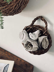 Hängkorgarna tillverkade av bananblad erbjuder en naturlig och hållbar lösning för ditt hem. Materialet är både tåligt och miljövänligt, vilket gör det till ett utmärkt val för dem som värdesätter hållbarhet. Den särpräglade texturen hos bananblad ger en varm och inbjudande känsla som kompletterar olika inredningsstilar. Dessutom bidrar användningen av naturliga material till en hälsosammare inomhusmiljö.