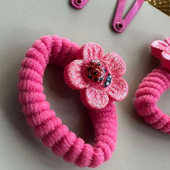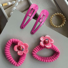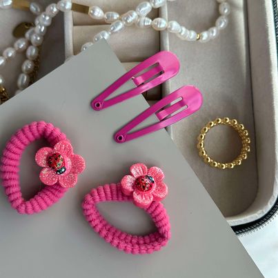 Trött på att leta efter matchande håraccessoarer för ditt barn? Detta rosa set med söta detaljer erbjuder en enkel lösning för att hålla din lillas hår på plats, samtidigt som det ger en charmig touch till varje outfit.